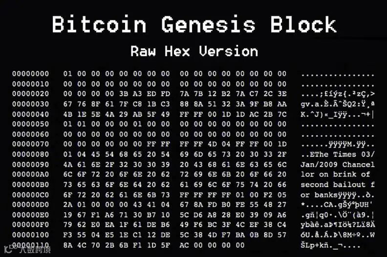他在这个区块中永久地留下了一句话:“The Times 03/Jan/2009 Chancellor on brink of second bailout for banks.(泰晤士报 2009年1月3日 财政大臣正处于实施第二轮银行紧急援助的边缘)”。这句话,既是对区块产生时间的证明,也是对旧金融体系无声的嘲讽。