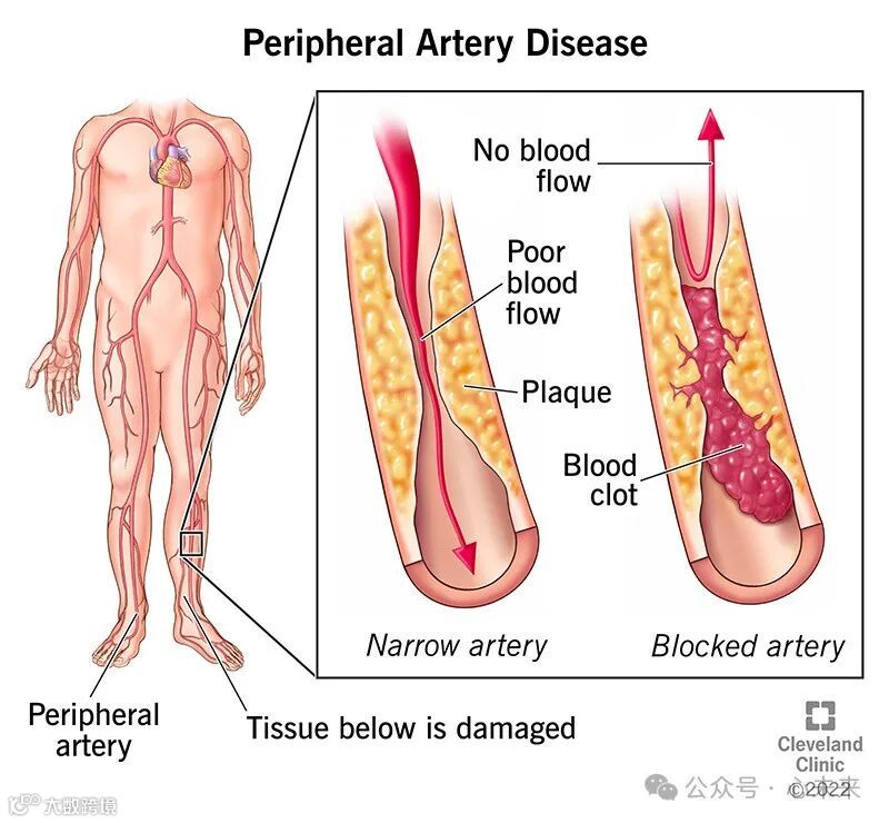 外周动脉疾病主要由动脉粥样硬化引起,后果严重,包括间歇性跛行、下肢静息痛、严重的高血压和肾功能衰竭、颈动脉狭窄等。与心、脑动脉粥样硬化同源,也常伴随心肌梗死(MI)、脑卒中,心性死亡发生率也增加。