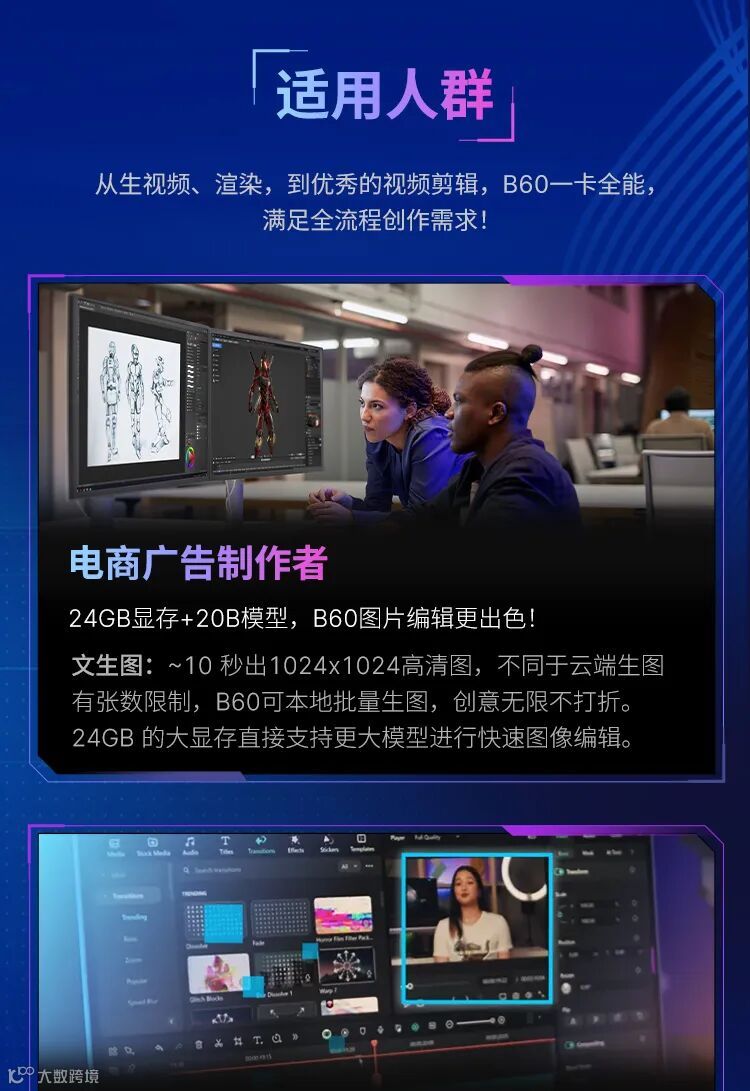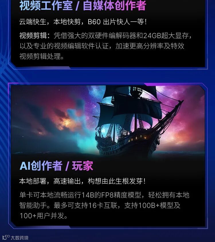 本次推出的Arc Pro B60 TF/BS 24G专业显卡,是一款24G显存AI创意设计全能卡,针对企业级市场和专业创作者而打造,提供“低成本高产出”的专业算力解决方案,为AI赋能助力。