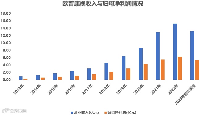 为了保障公司收入的稳定增长,欧普康视还与网红小杨哥旗下的三只羊合作,销售“瞳医森玻尿酸蒸汽眼罩”等眼睛护理产品,但与三只羊合作对欧普康视业绩的支撑还比较有限,2023年第三季度,单季公司的收入仅比2022年同期增长了2.41%。