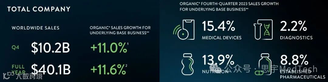 Ford表示:“雅培产品组合的优势和多样性推动了我们在2023年取得成功。我们正以积极的势头进入2024年。凭借我们高产的产品线,我们为2024年及以后的增长做好了充分的准备。”