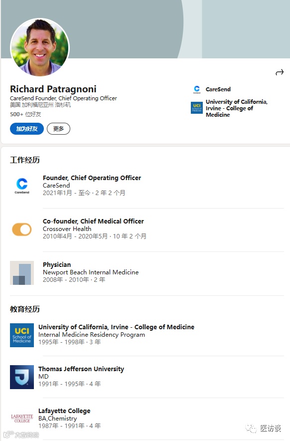今日访谈Richard Patragnoni医生。Richard Patragnoni医生是Crossover的联合创始人。他是美国医学专业委员会 (ABMS)认证的内科医生。
