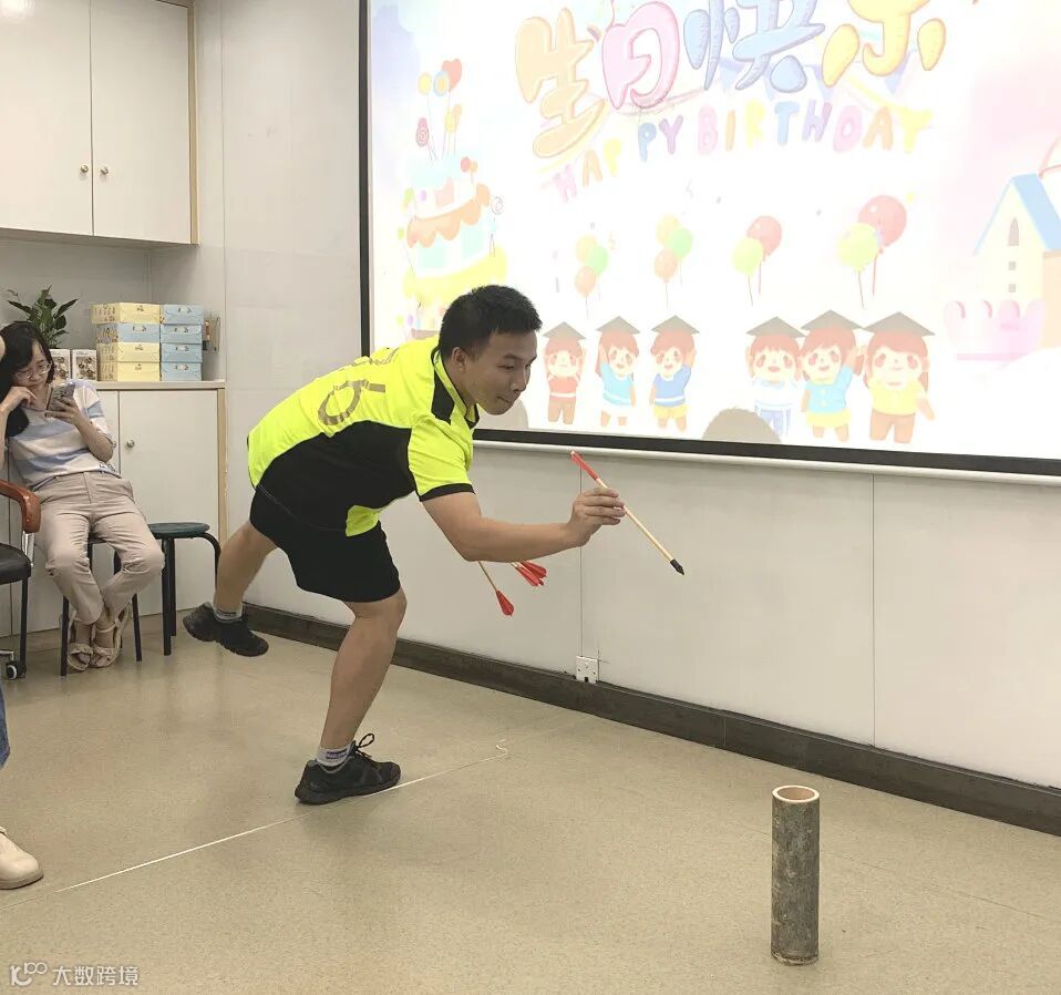 为了让大家玩得开心,现场准备了拓展小游戏“投壶游戏”、“记忆翻牌”、“一口闷喝可乐”,寿星们三人一组参加游戏,现场气氛持续升温,充满欢声笑语。