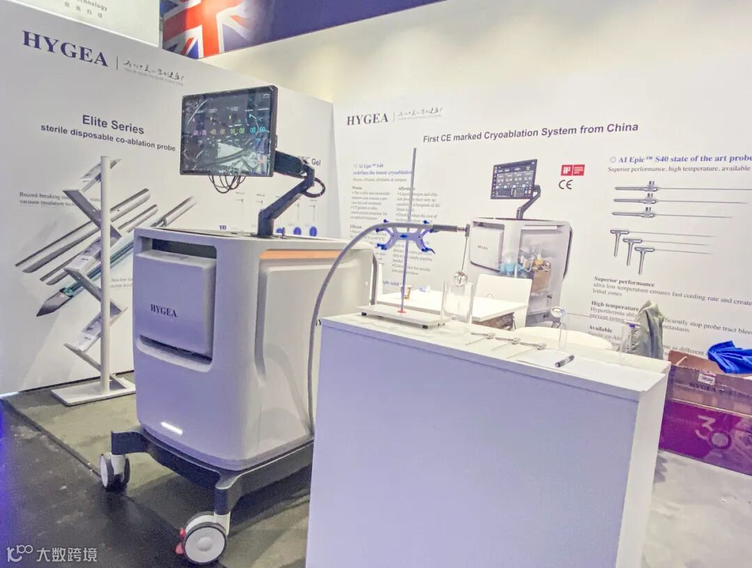 业务聚焦“经皮介入”和“经血管介入”两大微创领域的海杰亚携带其在创新医疗器械领域的最新研发成果的康博刀、微波消融和AI产品亮相MEDICA。其中,全球首创的康博刀,将第一次与海外尤其是欧洲客户深度接触。此外,海杰亚还借此契机,向全球客户展示了“高低温复合式冷热消融”核心技术。