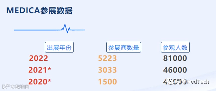 此外,专注超声领域的祥生医疗,完整布局高值耗材和中低值耗材的蓝帆医疗,覆盖康复医疗全产品体系的翔宇医疗,专注于微创外科成像设备的图格医疗,主营体外诊断产品的九强生物,技术创新驱动的影像设备公司一影医疗,专业从事睡眠呼吸监测和治疗系列产品的万脉医疗,以血压监测、体温监测、中医设备、手术器械为基石业务的鱼跃集团,专注呼吸健康领域医疗设备与耗材产品制造的怡和嘉业,致力于患者生理监护、生理信息分析及家用健康医疗产品的超思,专注于高品质医疗检验产品的迪瑞医疗等众多医疗器械公司都积极出海,云集2023届MEDICA。