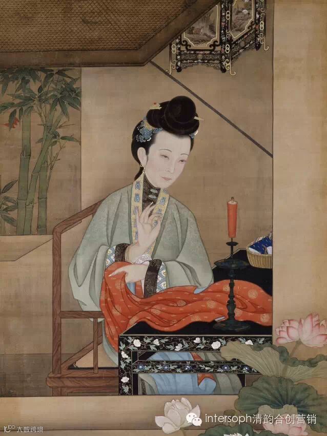 清雍正胤禛美人图“烛下缝衣”