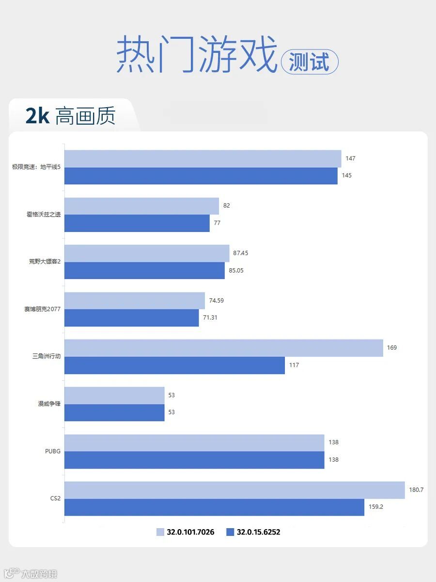《三角洲行动》 成为本次测试的 “黑马”,帧数提升30.77%;《CS2》 帧数提升11.90%;《PUBG》与《漫威争锋》在两个驱动下的帧数保持一致。