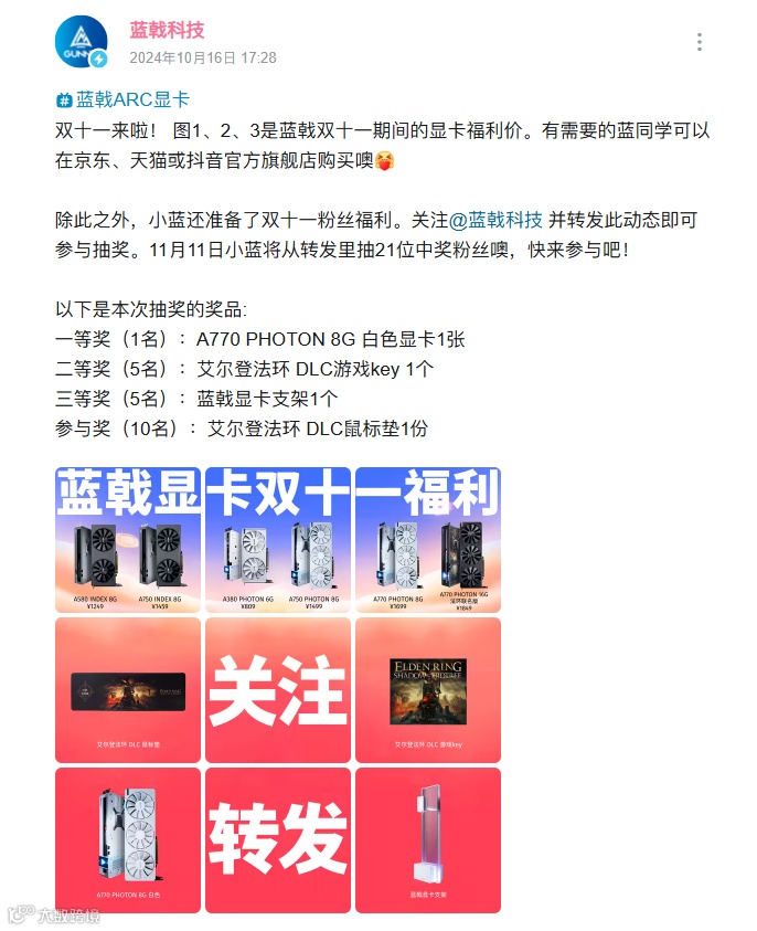 一起来看看蓝戟双十一期间的显卡福利价吧