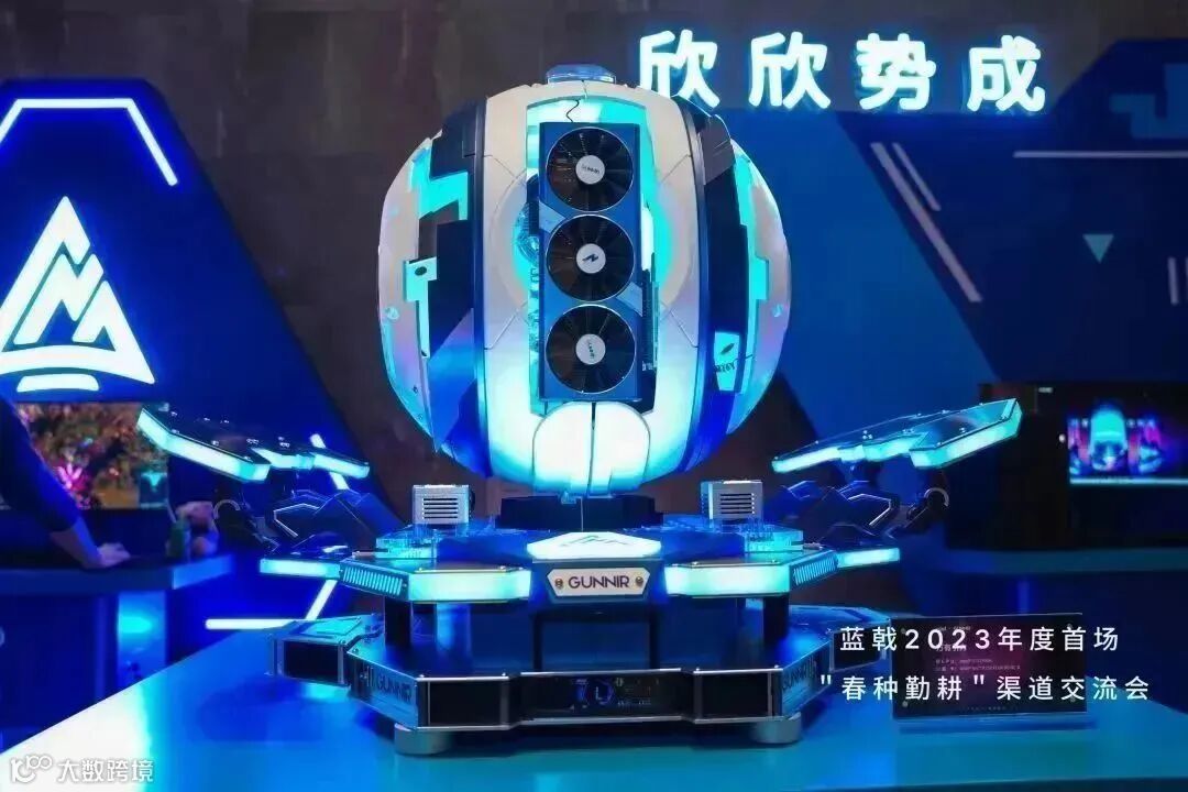 GUNNIR蓝戟在现场准备了17台完整的电脑设备,涵盖蓝戟全系列显卡,供嘉宾们体验ARC显卡的流畅与速度。最引人注目的当属GUNNIR蓝戟定制的MOD主机,以“万有引力”为名,以未来科幻为主要风格,凭借悬浮球状外观和高级灯光点缀,一种呼之欲出,未来已到的感觉跃然于眼前。
