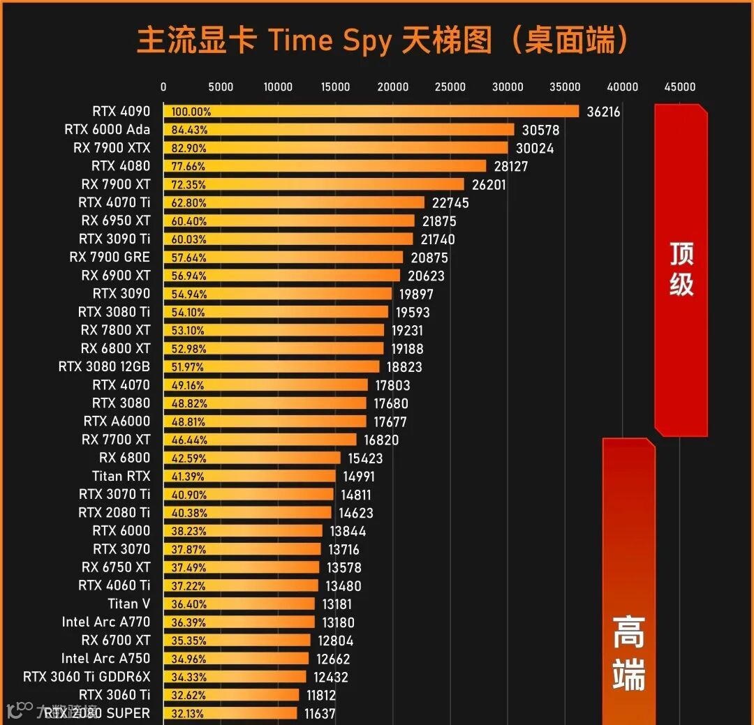 根据不同方面的性能也有不同的天梯图,比如在Time Spy性能天梯图中,3060TI G6X 8G<A750 8G<A770 16G<4060TI 16G。