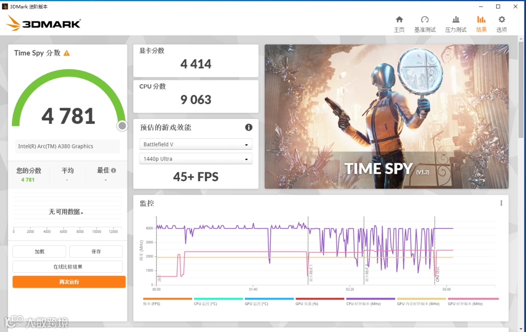 3DMark是一款专门检测显卡性能的工具,用户可以根据软件测出来分数,大致判断显卡性能。3DMark中包含多个检测类型,Time Spy是针对DirectX12性能进行的3D测试,Fire Strike则是针对DirectX11进行测试。我们也针对A380 Photon进行过测试,在1743驱动下测得Time Spy成绩为4781,Fire Strike成绩为10248,属于入门级别的显卡,这个性能在日常使用中无压力。
