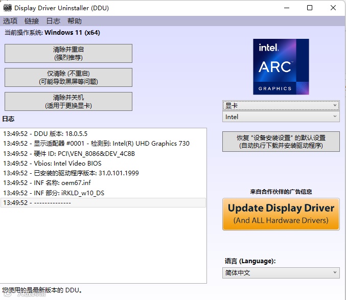 Display Driver Uninstaller简称DDU,是用于显卡驱动程序卸载的软件,当用户无法卸载驱动或卸载不干净时,使用DDU卸载既高效又彻底。软件支持卸载显卡或声卡驱动,其中显卡支持NVIDIA、AMD和Intel三家。使用时建议选择“清除后重启”选项,有效避免bug的出现。整个界面同样简洁,很适合普通用户使用。