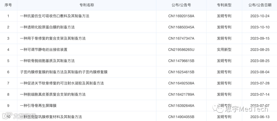 通过国内外技术的引进与高端装备的自主创新,诺一迈尔的产品线涵盖了静电纺、3D打印、化学合成等组织工程领域的关键技术路线,覆盖了膜、骨、胶、剂等丰富的产品形态,延伸到口腔、眼科、耳鼻喉、外科、生殖医学、运动医学等多个临床科室,是国内再生医学与组织工程领域赛道齐全、技术先进的综合方案提供者之一。