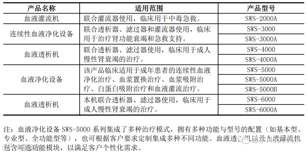 在血液净化设备方面,公司已取得5项三类医疗器械注册证书,公司设备全系列产品均已被国家列入“优秀国产医疗设备产品目录”,具体产品情况如下:
