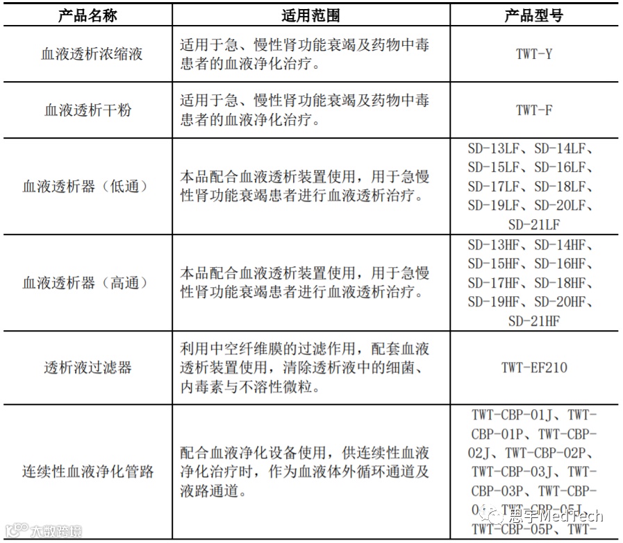 公司血液净化耗材取得了血液透析浓缩液、血液透析干粉、血液透析器(低通)、血液透析器(高通)、透析液过滤器、连续性血液净化管路、一次性使用血液灌流器等三类医疗器械注册证书,已基本完成自产血液净化耗材的全线布局。