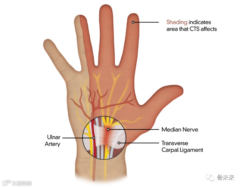 腕管综合症(CTS)是一种常见疾病,会导致患者手部和手臂疼痛、麻木和刺痛。如果手部主要神经之一(正中神经)穿过手腕时受到压迫,就会发生这种情况。正中神经控制拇指的运动以及拇指和前三个手指的知觉,沿着手臂和前臂延伸,穿过手腕处的腕管,进入手部。