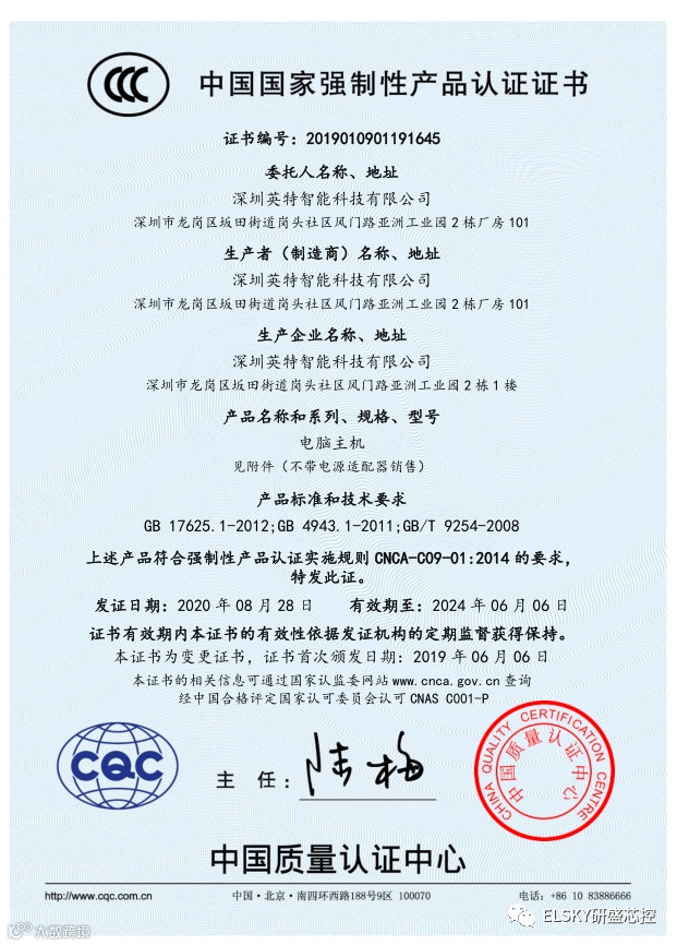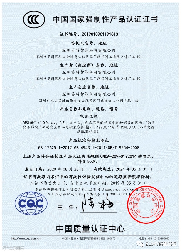 研盛集团旗下深圳英特智能科技有限公司顺利通过ISO9001:2015体系认证年审(SGS审核),及全系列整机产品3C认证年审(CQC审核),研盛芯控通过了SGS认证的金品诚企。分别针对我司质量体系、产品可靠性、公司研发和生产、技术服务能力进行了认证。