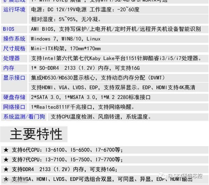 研盛QM1100 : H110高速处理器6代7代i3i5i7高性能主板金融 安防 航空首选主板 ELSKY研盛芯控