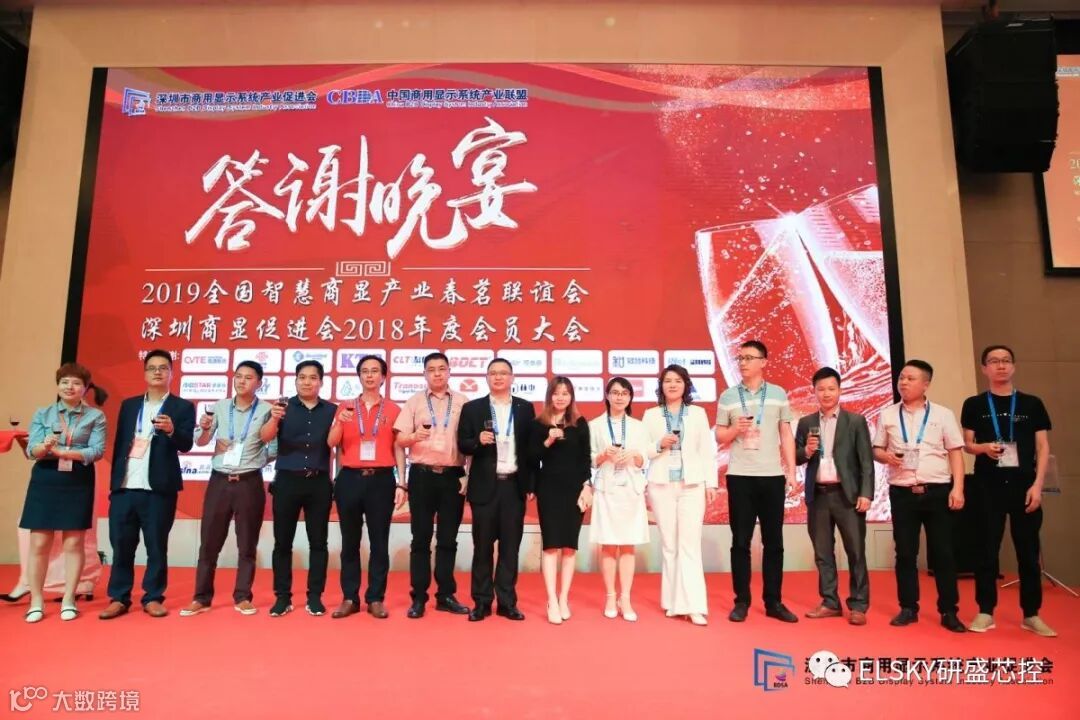 在晚上举行春茗会晚宴上,协会秘书长梁毅先生对包括研盛芯控、视源、康冠等赞助企业表示感谢,我司总经理钟煌先生等赞助企业负责人受邀上台祝酒。