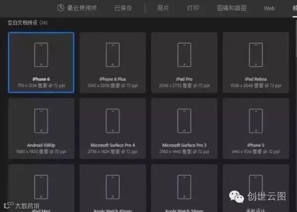 注意了在移动模块的预设中不仅仅有iPhone、iPad、Watch的尺寸预设。