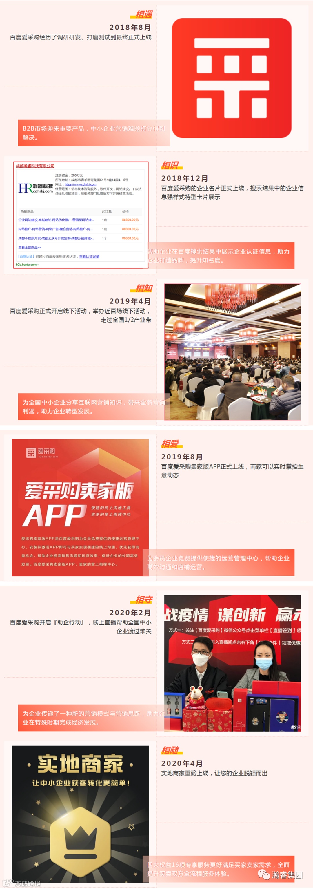 从相遇、相知、相爱到相守,百度爱采购与您一路相伴相随。我们逐步蜕变、升级,只为给您更好的服务与体验,助力企业经济发展,我们一直在坚持。