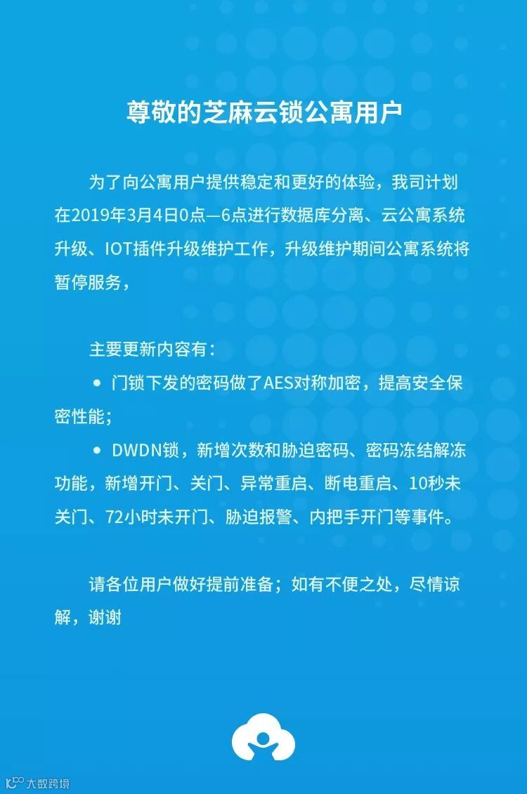 芝麻云锁升级通知