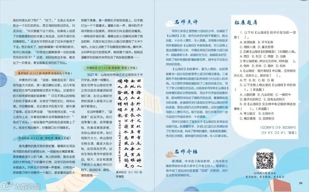 值得一提的是,在经典文化的阅读下,莘松中学开启了“中华小学士”的培养计划。学子们在《儿童时代》杂志“少年中国说”栏目的公益支持下,深入经典世界,聆听名家点拨,创作的书画作品屡登期刊与展览,实现了从“输入”到“输出”的跨越。