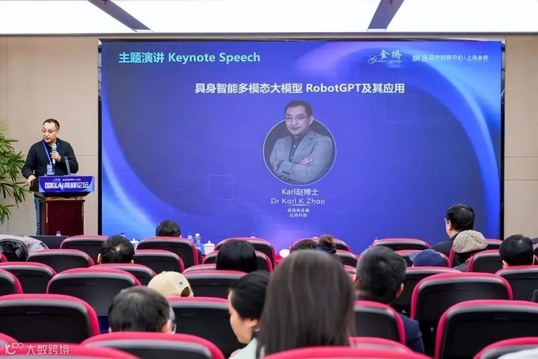 达闼科技高级副总裁Karl赵博士发表主题演讲:具身智能多模态大模型 RobotGPT及其应用。让大家更直观的了解具身智能与传统机器人的区别以及具身智能平台和场景应用。