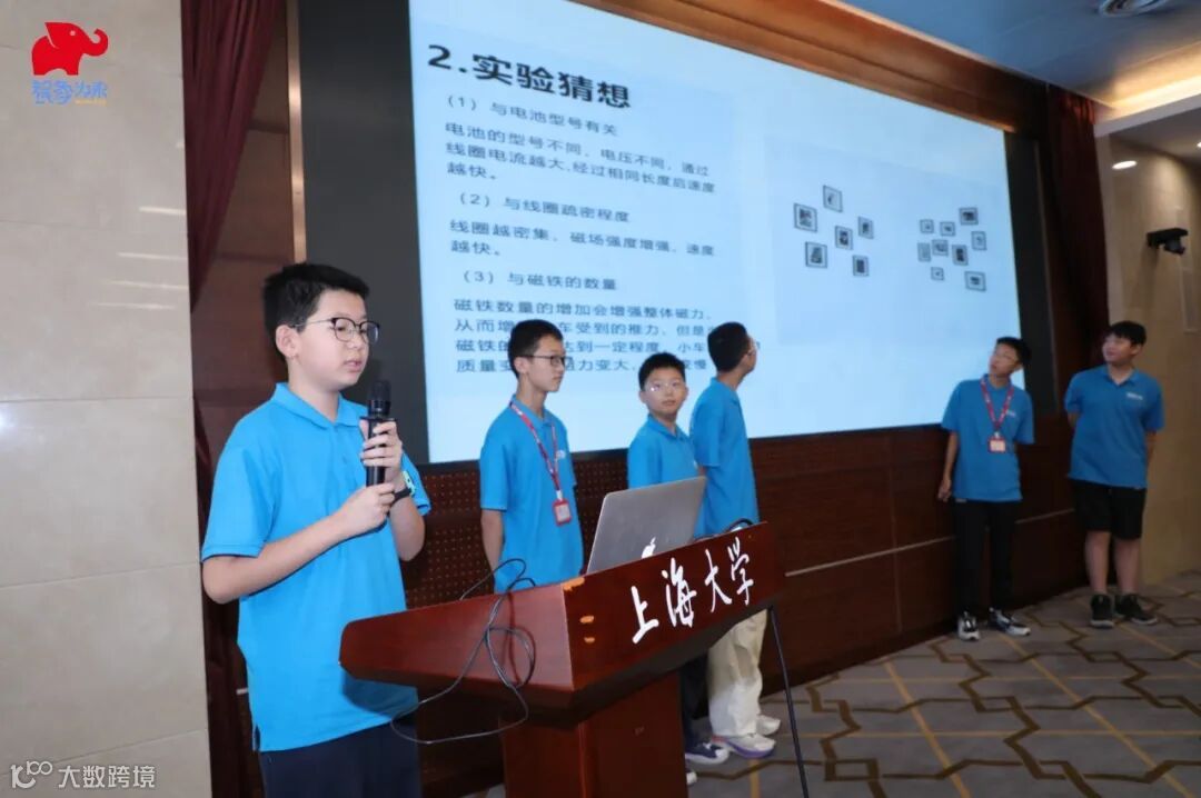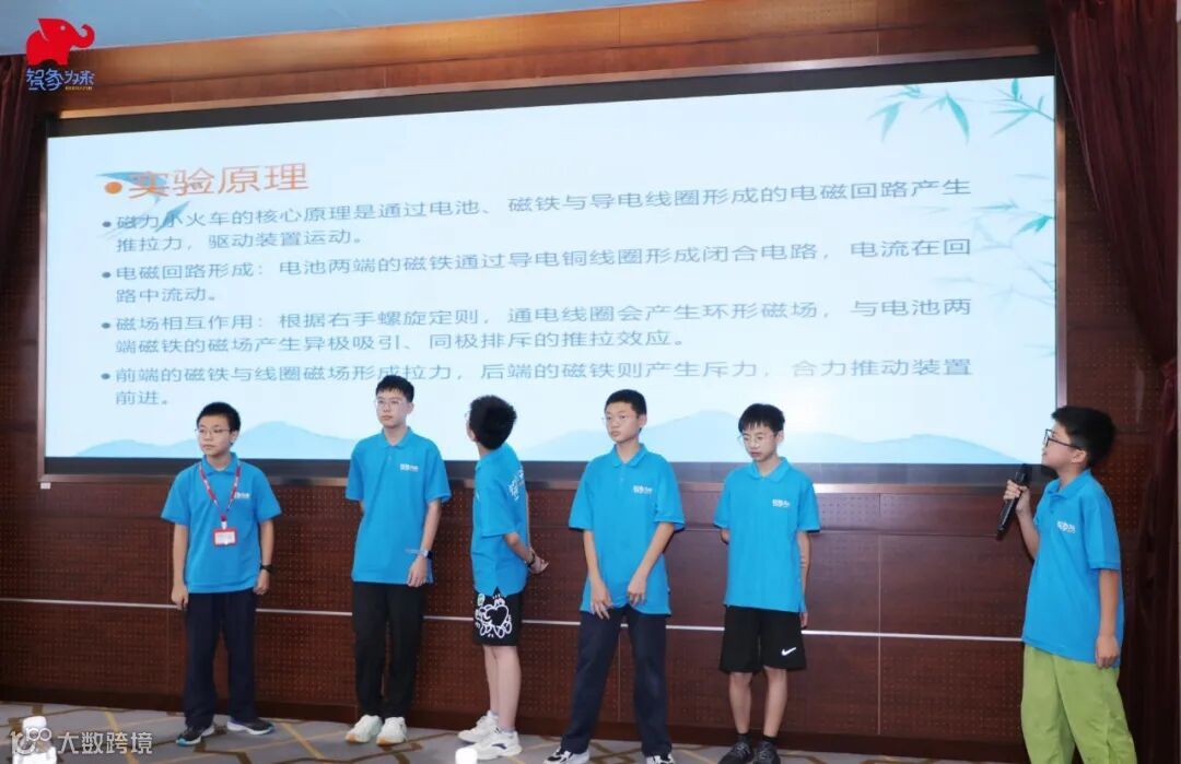 结营仪式上,各小组同学依次登台,自信满满地展示了他们亲手实践探究的“磁力小火车”实验成果。不仅清晰地阐述了实验的设计思路与严谨的操作流程,还就实验中观察到的神奇现象、记录的实验数据、遇到的困难及解决思路进行了成果分享。充分展示了同学们在项目实践中提升的科学素养、动手能力和团队协作的精神。