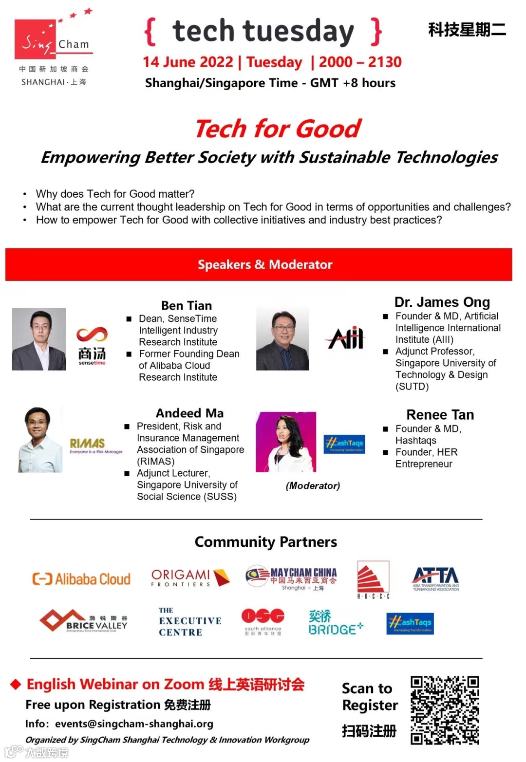This webinar on "Tech for Good" is put together by SingCham Shanghai to advocate for how we can empower a better society with sustainable technologies.