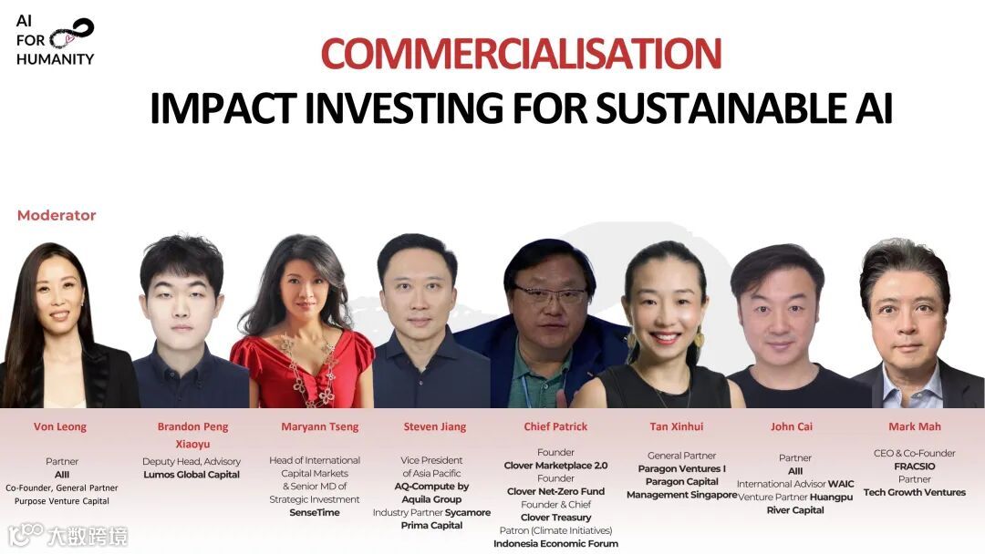 In this panel discussion focused on AI commercialization and impact investing, moderator Von Leong brought together eight seasoned investors from different global regions, facilitating an in-depth exploration of sustainable AI development through carefully designed interactions.