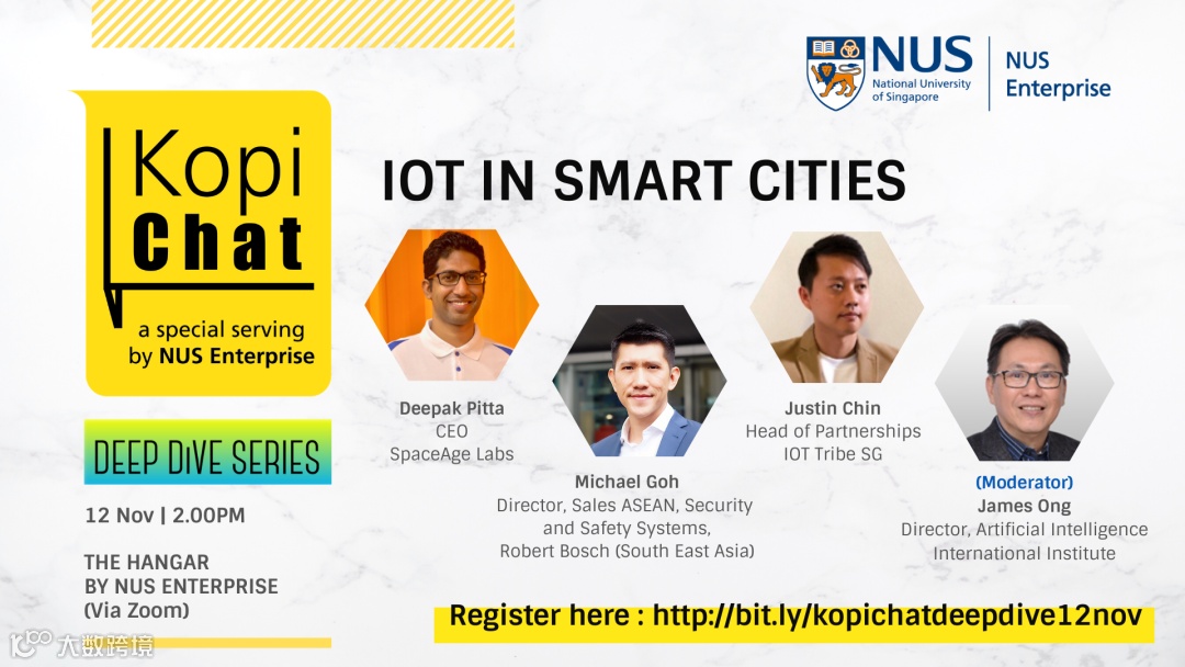 新加坡国立大学(National University of Singapore)国大企业(NUS Enterprise)将在2020年11月12日举办“智慧城市IOT”(IOT in SMART CITIES)圆桌论坛。