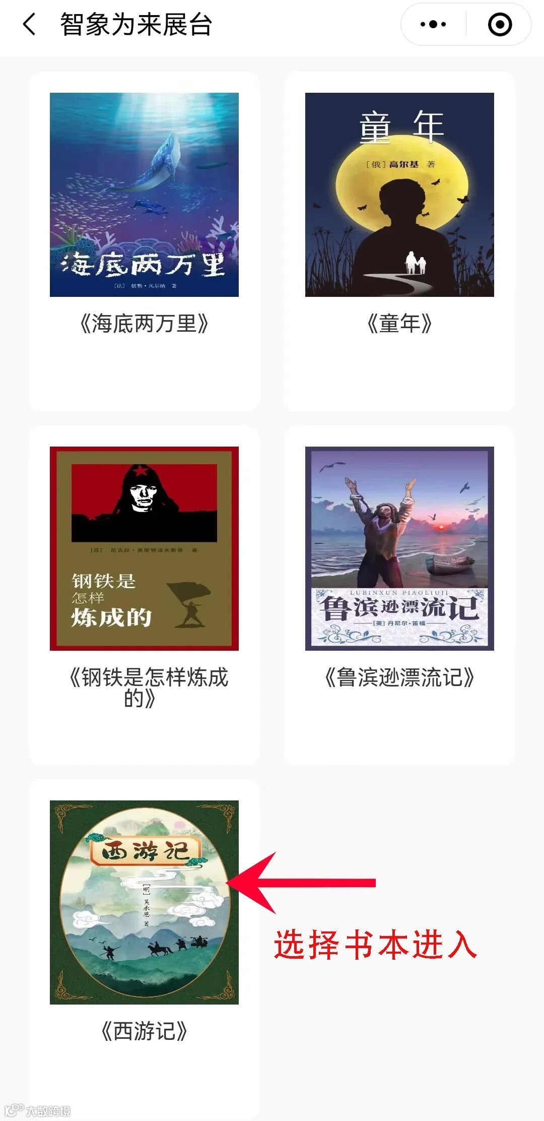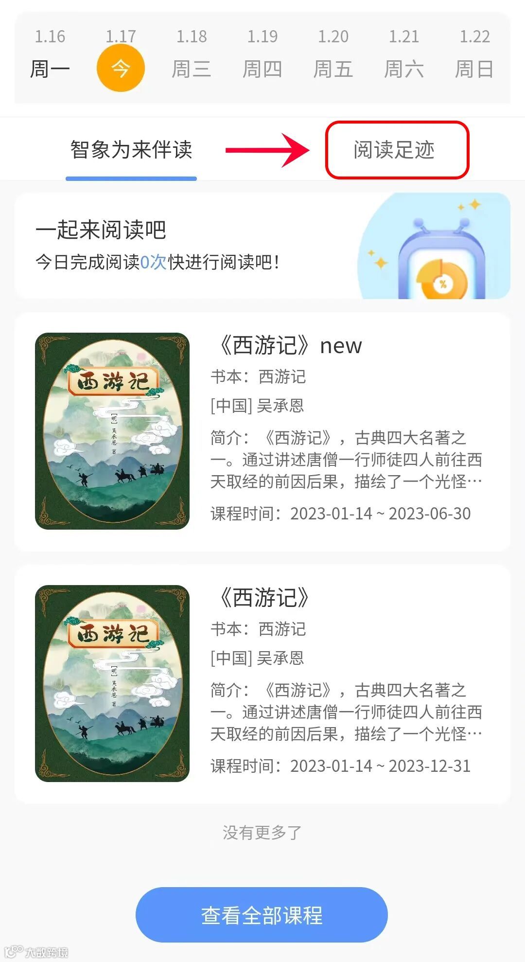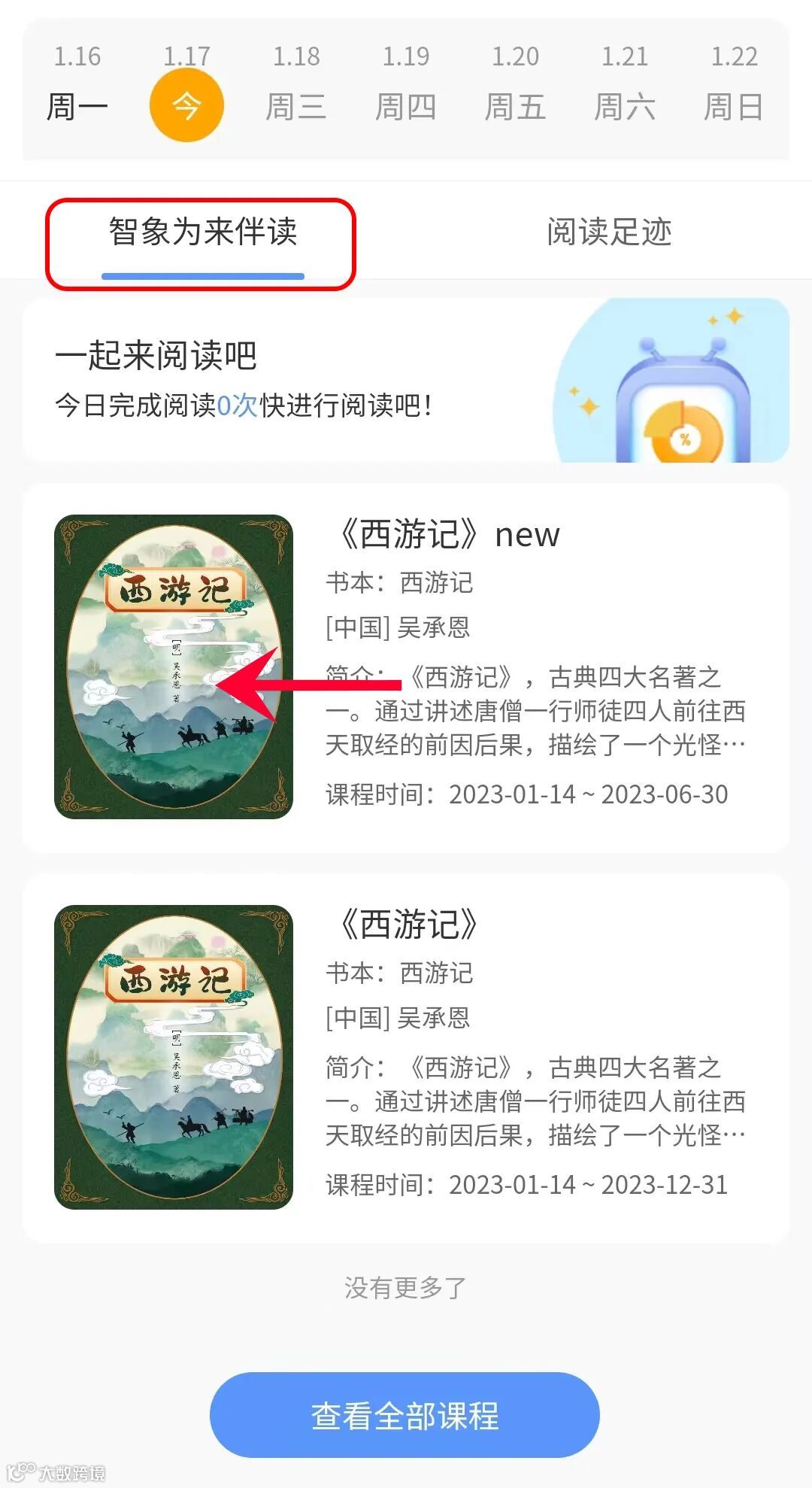 首页有6大板块,可以首先通过点击“自主阅读”板块进行书目的阅读,学生可在“自主阅读”——“智象为来伴读”中选择本次阅读的书目,并且按章节顺序进行阅读。
