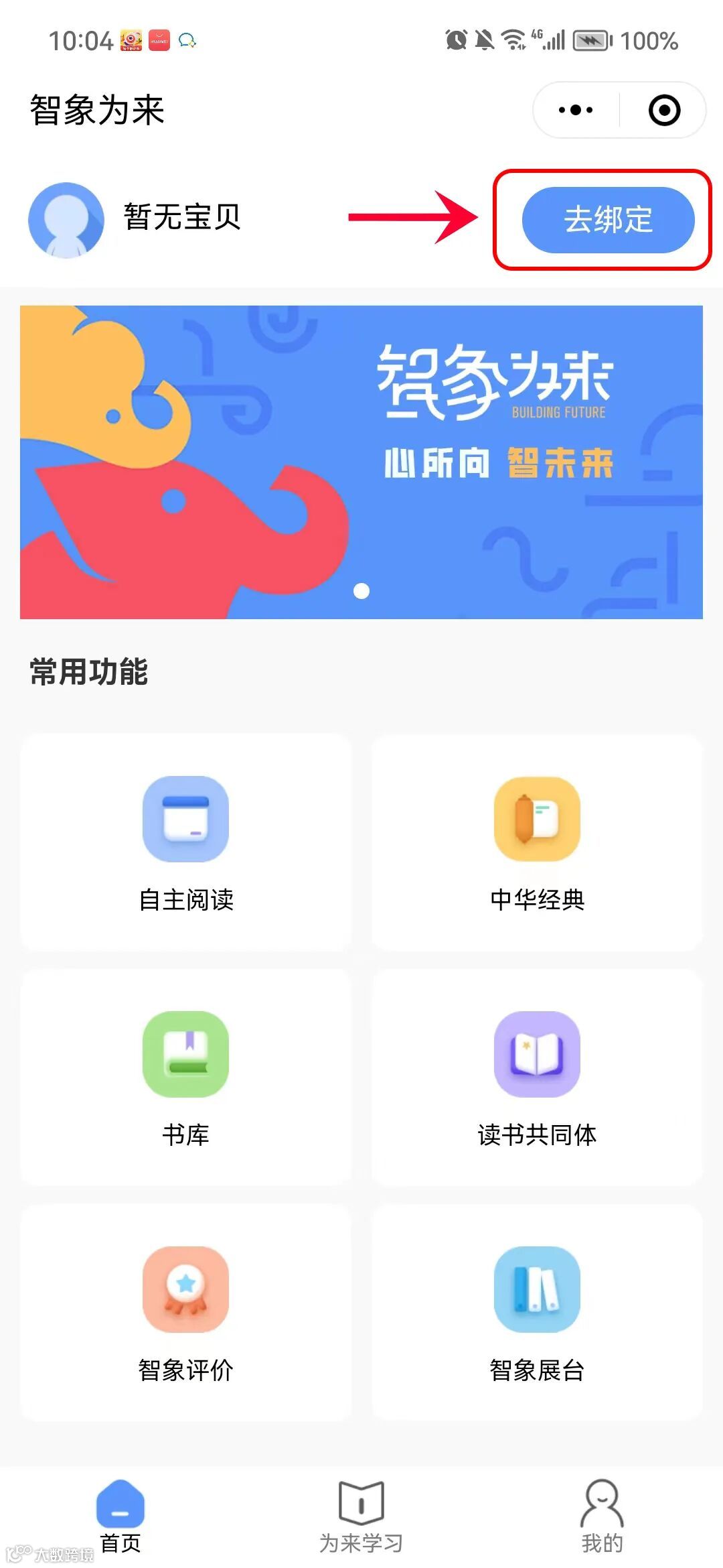 家长请使用手机号码登录,在“去绑定”中为孩子绑定学生信息。