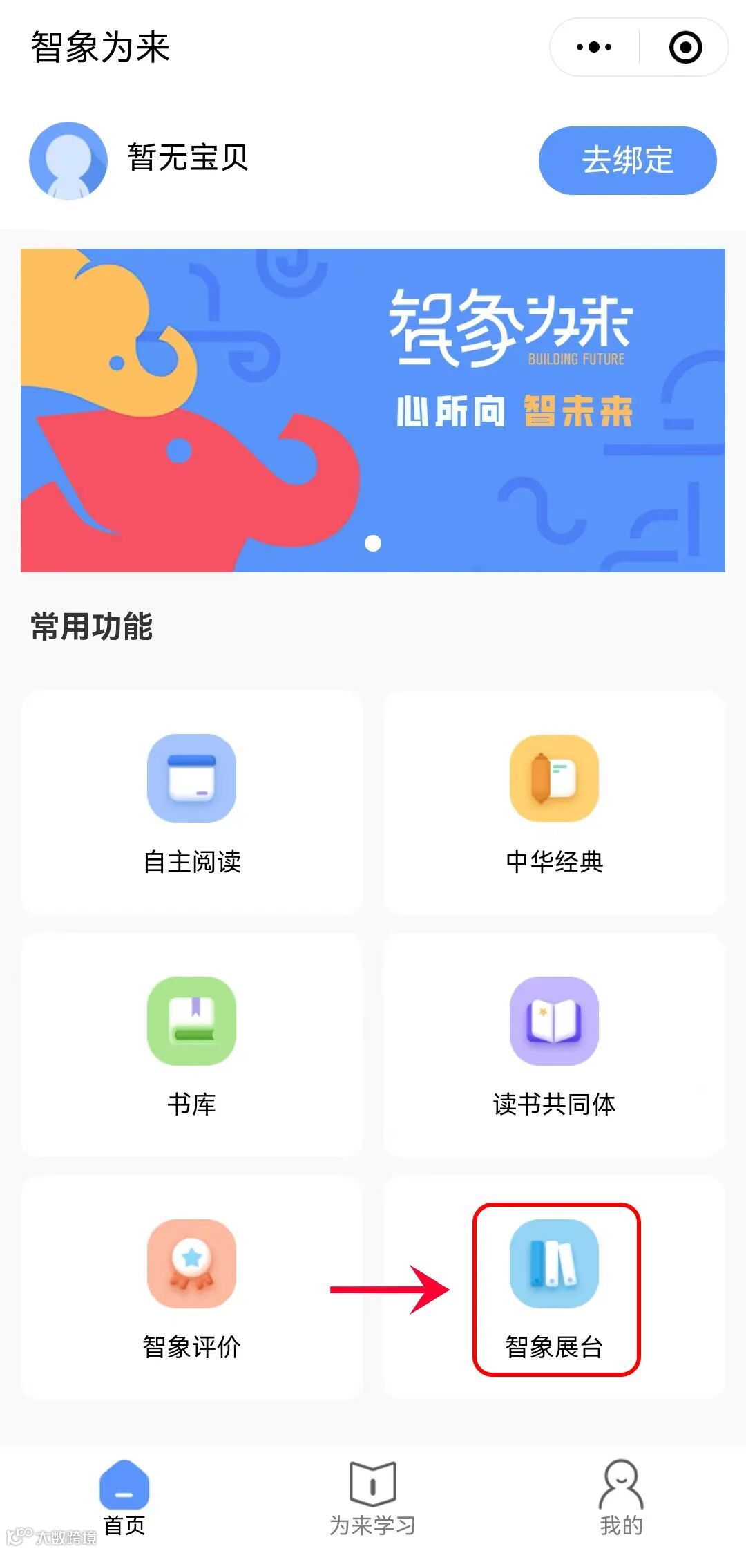 在微信中搜索“智象为来”小程序,大家请认准红色小象的logo哦。