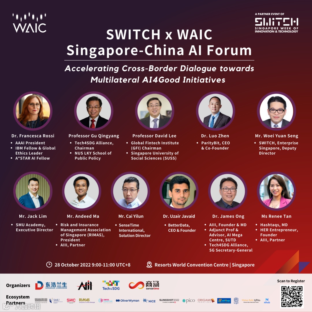 Topic:SWITCH x WAIC Singapore-China AI Forum:Accelerating Cross-Border Dialogue towards Multilateral AI4Good Initiatives