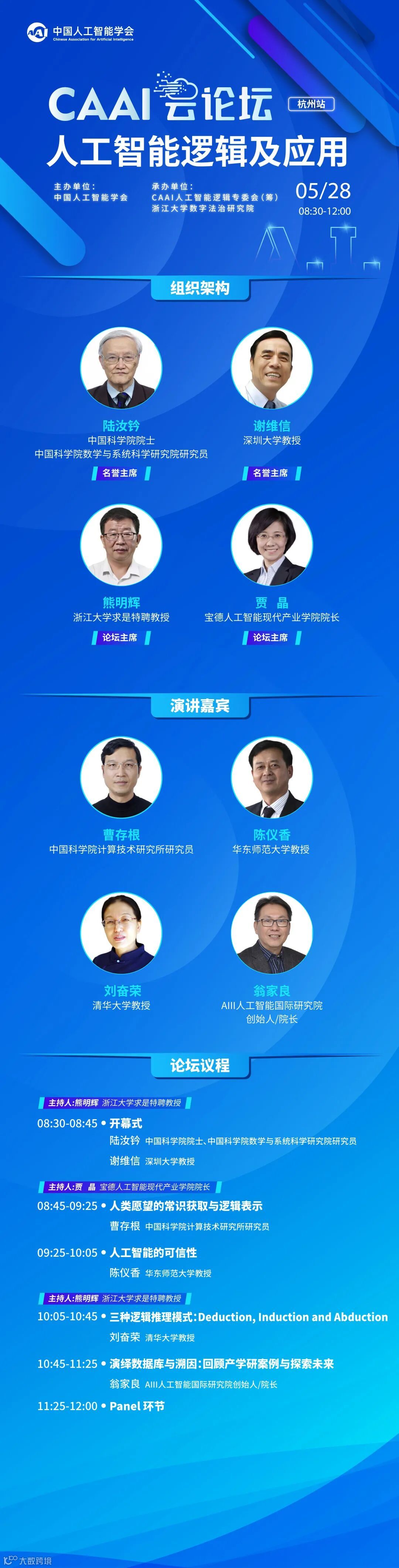 在第六个全国科技工作者日来临之际,由中国人工智能学会主办,CAAI人工智能逻辑专委会(筹)和浙江大学数字法治研究院承办的CAAI云论坛(杭州站)将于2022年5月28日上午举行。