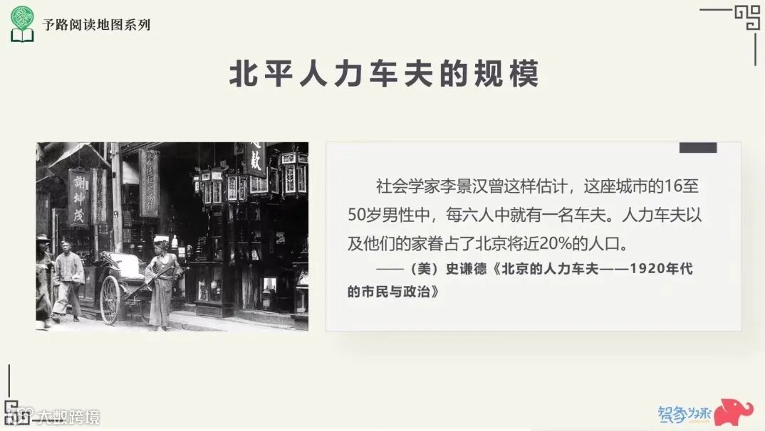 比如参考相关的专业统计和重要论述,对1920年代北京的人力车夫进行经济学和社会学分析,达到了研究的层面,这恰恰是今天教育提倡的人的知识结构的拓展。