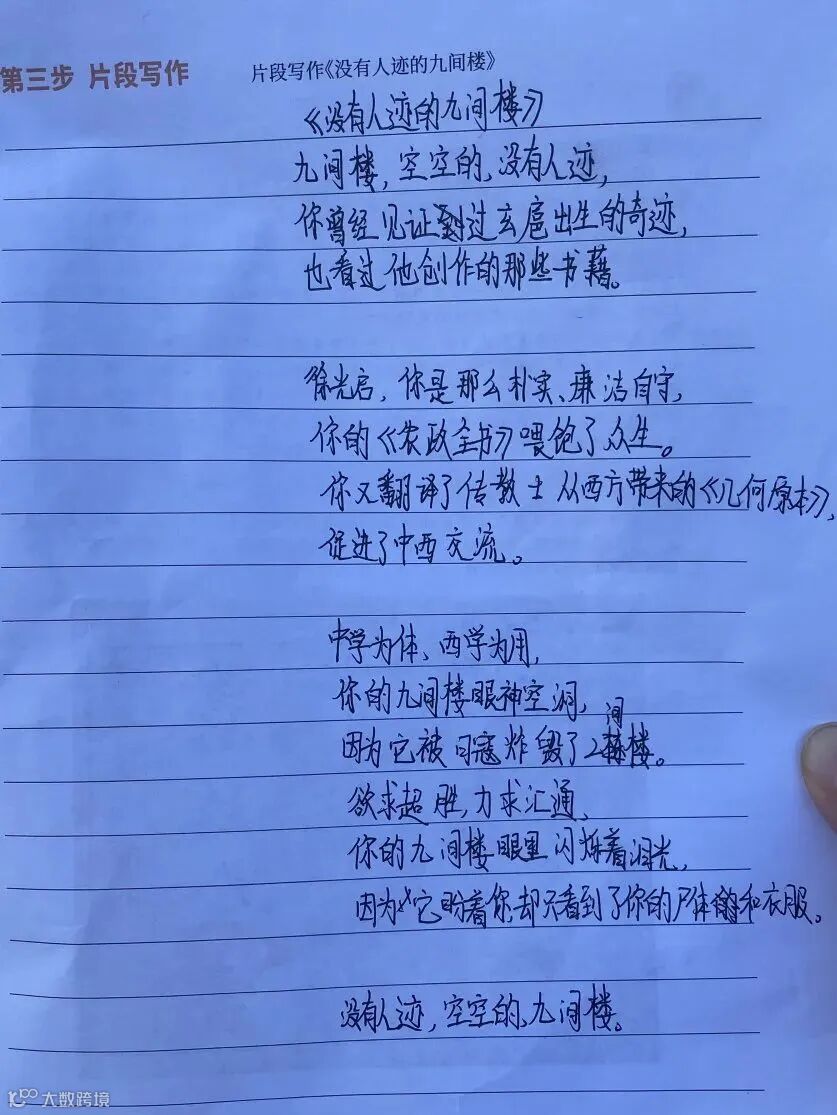 眼前沧桑的九间楼曾是编写了《农政全书》一书的徐光启的住所。同学们在古冈老师的娓娓道来中倾听着这个“携娴熟中西发展“的动人故事,走进繁华城厢的岁月。
