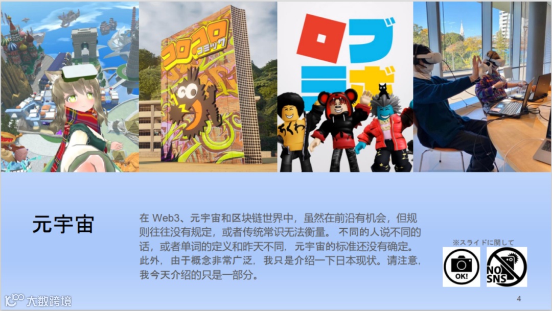 日本元宇宙国际协会理事长小室熙美就“日本元宇宙发展趋势、现状及面临的伦理问题”发表主题演讲。小室熙美指出,日本3年前已经有很多入住元宇宙生活的人。根据相关调研,日本国内有90%的民众了解XR技术,12%的民众有使用经历,56%的民众在未来有XR技术使用意愿, 25%的民众有计划在明年使用。小室熙美表示,NFT技术作为Web 3.0时代的催化剂正在成为各方关注的焦点,日本的动漫、游戏、漫画等有潜力在NFT方面引领世界。最后,她介绍了在生活、文化、经济方面,现实生活与元宇宙生活的差异。