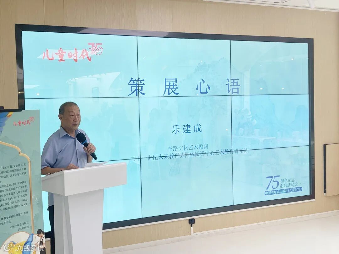本次展览策展人、予路文化艺术顾问、二十一世纪未来教育共同体阅读中心艺术教育研究员乐建成老师分享了展览的筹备历程和巧妙的心思。他表示在筹备的过程中,经常会被孩子的作品所打动,一笔一画间,厚重悠久的中华文化在他们的笔下变得轻盈、鲜活,焕发出童真的温度与力量。他期待通过这样的艺术表达,连接文化的过去和未来,让文化自信在更多孩子的心中生根发芽。