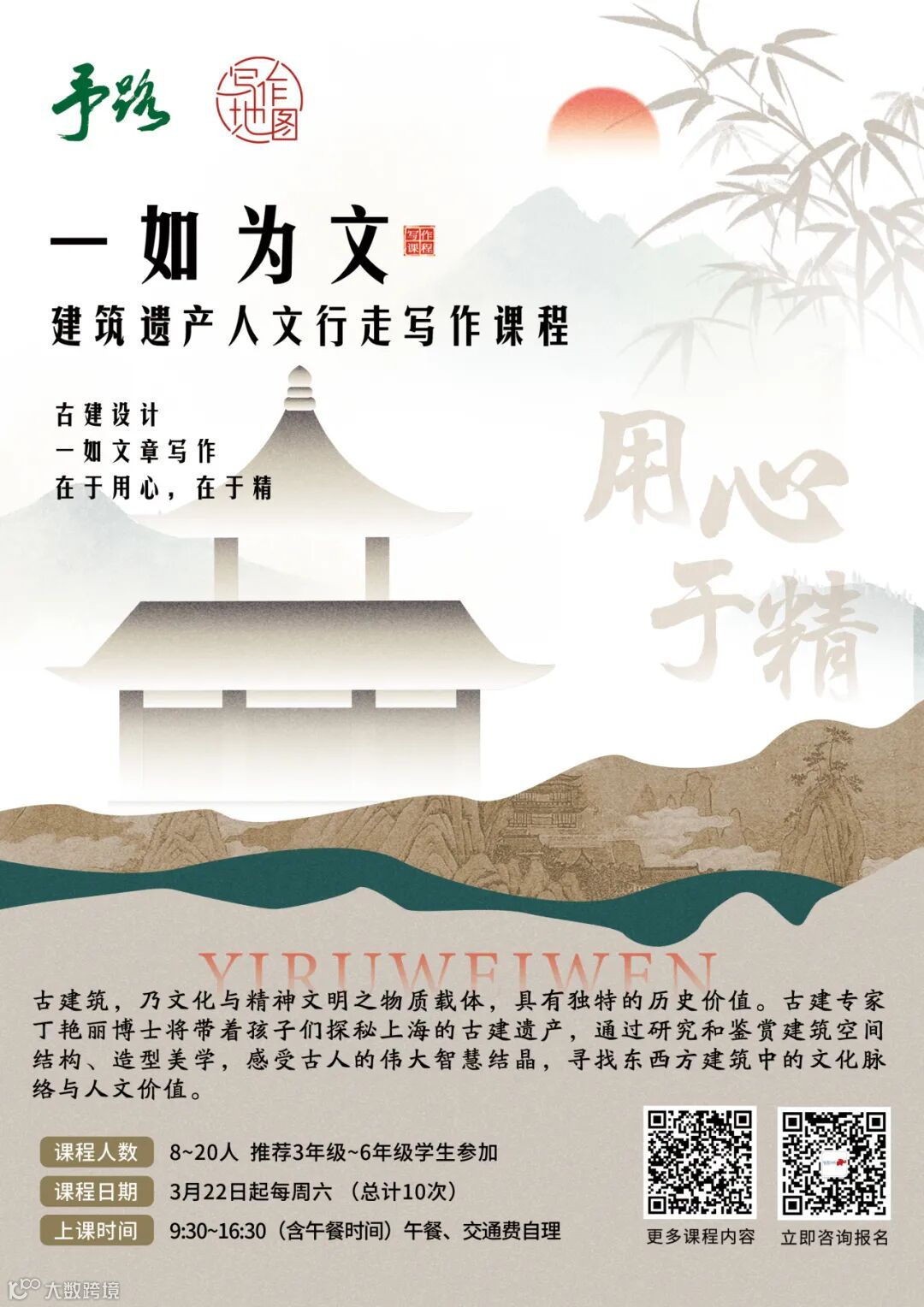 东方古建筑,是中国的一张亮丽名片,是我们穿越时空与古代智慧对话的艺术和技术载体。古建专家、同济大学建筑学博士丁艳丽老师精心策划打造的“一如为文”建筑遗产人文行走写作课程,将带着学生们探寻城市中的古建艺术,聆听每一座建筑的故事,感受深藏在中国古建砖瓦间的智慧魅力。