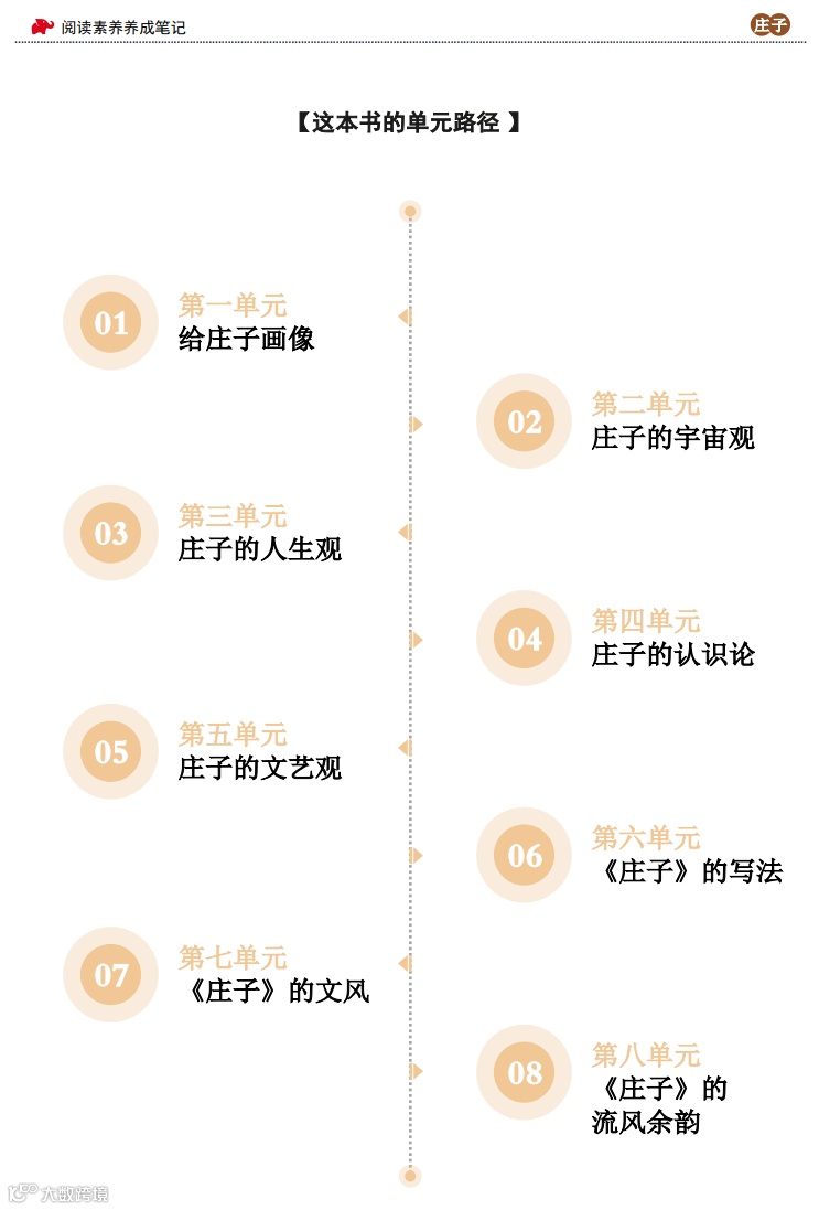这本《阅读素养养成笔记——<庄子>》的小册子,也做了类似的事情。编者选择了适切而有代表性的文段作为阅读的起点。“适切”主要指选段适宜切合小读者的语文水平、接受能力,“代表性”主要指选段确实是代表并反映了庄子的思想、行文特点、文字风格的。庄子思想本身颇有玄妙的地方,思维过程汪洋恣肆,说理往往不泥形迹,在具体的词句上也有不少奇谲诡丽的地方:这些在一定程度上都从适切和代表性两方面对小册子的选段提出了较高的要求。我觉得这本小册子的选段以及对选段分基础必读和进阶拓展这样的安排,一起较好地完成了这个任务。