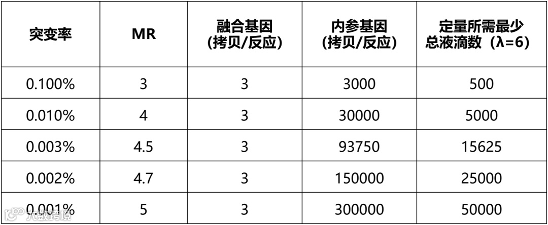 目前国内外关于BCR::ABL1 p210的室间比对定量值最低覆盖到0.01%,不能满足临床对于MR4.5甚至更低水平(0.001%(MR5.0))的要求。灵敏度越高(MR值越大),说明能捕捉到低丰度融合基因越充分,对微小残留病灶(MRD)的监测越精准。