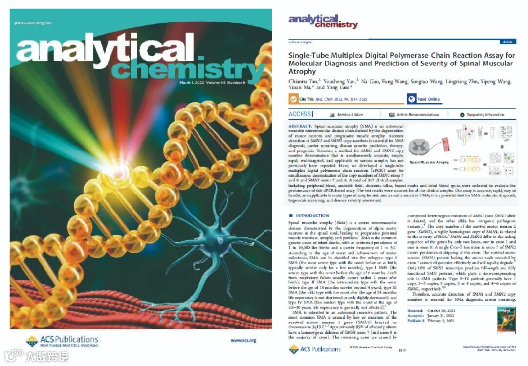 相关研究以封面文章发表于国际知名期刊Analytical Chemistry,全面助力SMA预防及疾病检测,帮助SMA患者早发现早治疗。