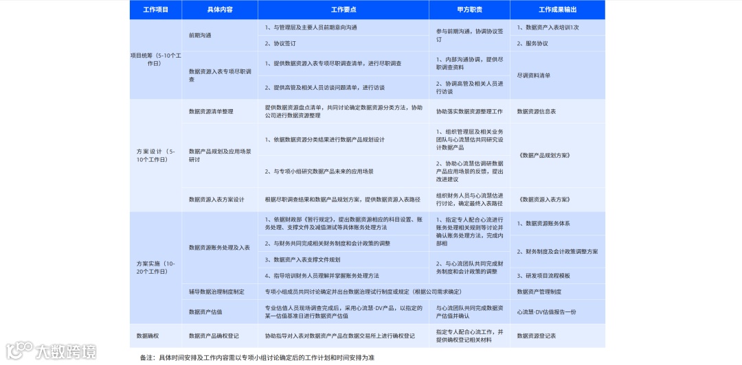 数据资源入表服务:为企业提供数据资源入表、数据资产估值、数据质量评价等标准化解决方案,助力数据要素市场化。