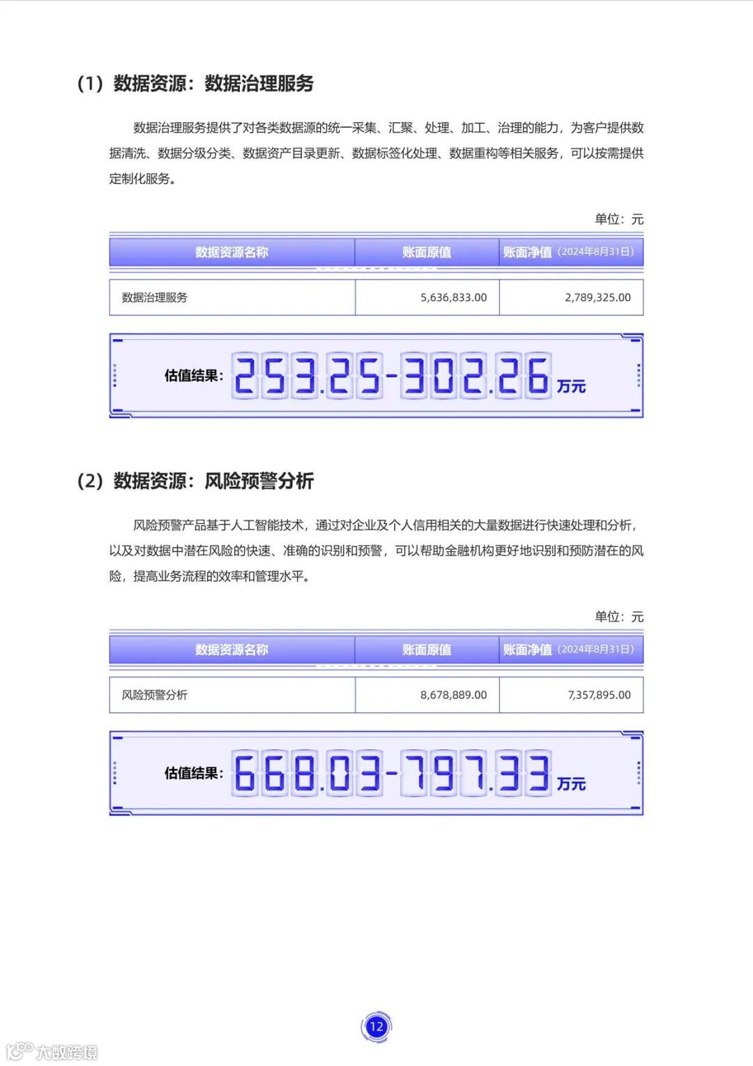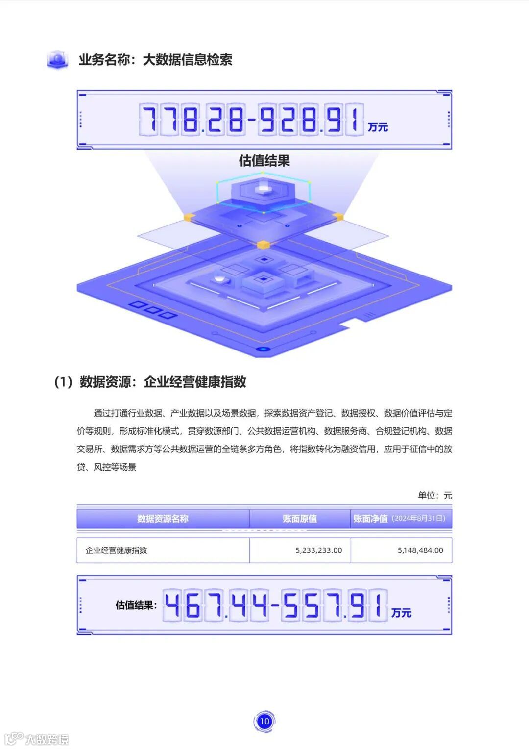 数据估值报告展示:
