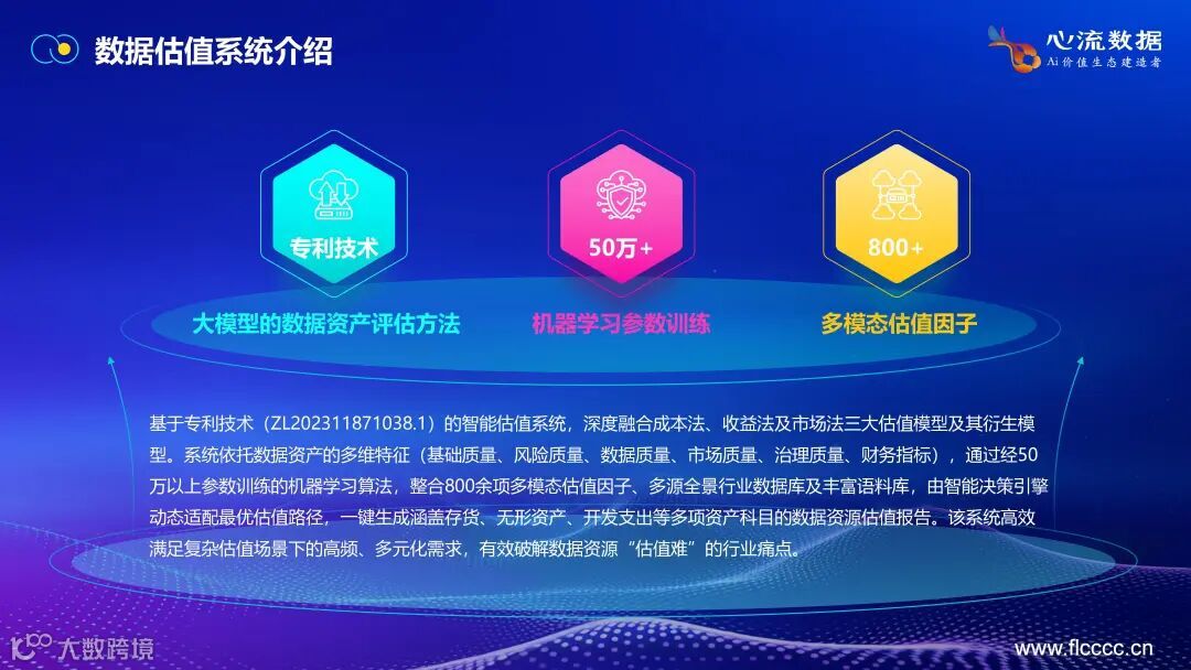 本周一,心流慧估率先参与复赛,凭借专业的估值服务能力获得关注。而在今日,心流数据携自研的【Ai数据变现系统】亮相赛场。该系统依托公司在 Ai 技术与金融领域的深度融合经验,聚焦数据资产入表、估值及质量评价等核心需求,能为企业提供从数据盘点到交易变现的全链条服务。