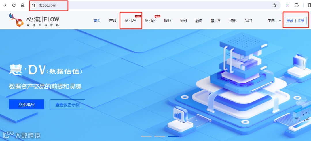 1.打开心流网——www.flcccc.com(复制链接至电脑浏览器中打开)→注册并登录账号→首页最上方菜单栏中点击“慧·DV”