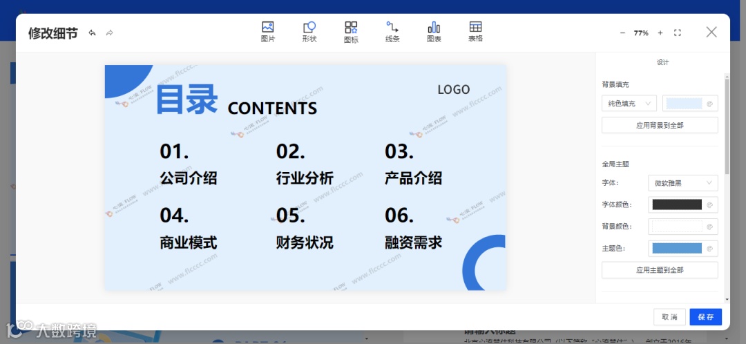 除了基本的设计和排版功能,慧·BP还支持自由添加素材,例如公司的图标、产品图片或者市场数据等重要信息,让您的商业计划书更加生动、具体,同时也更具说服力。